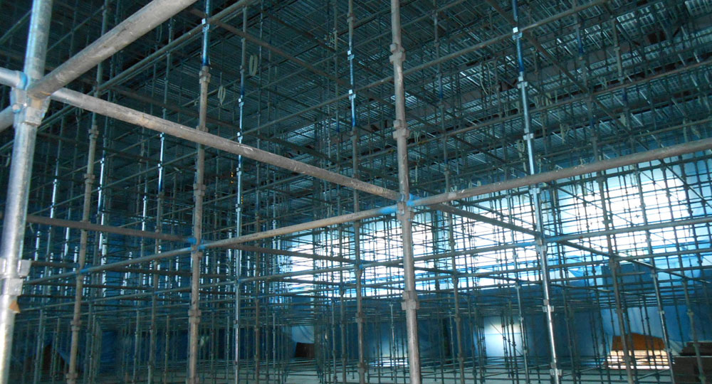 足場工事は、高所での作業では必須となる工程です。